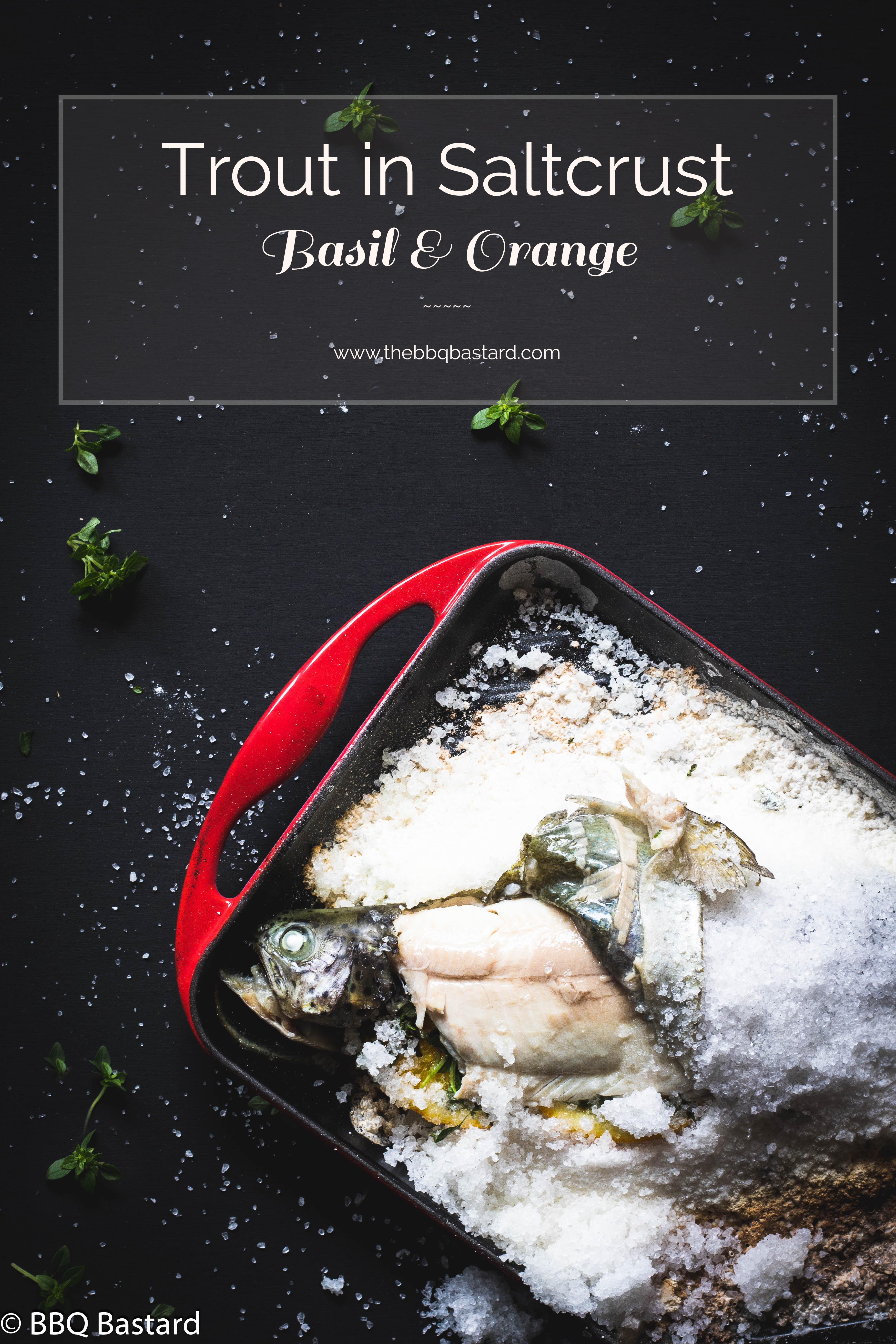 Vis op de BBQ… Ik doe het eigenlijk veel te weinig. Bij het terug zoeken naar enkele leuke recepten uit het verleden om te vertalen bots ik op deze forel in zoutkorst gevuld met appelsien en basilicum. En laat dit nu net één van de gerechten zijn die weinig BBQ smaak met zich meebrengt hoewel het op de BBQ werd bereid. De zoutkorst houdt namelijk de rooksmaak tegen. Toch is het een leuk recept om met jullie te delen! Een zoutkorst ziet er niet alleen spectaculair uit bij het opdienen en is eigenlijk ook eenvoudig te maken. Bovendien brengt het nog wel enkele voordelen met zich mee waar we het verder in de post nog over hebben!